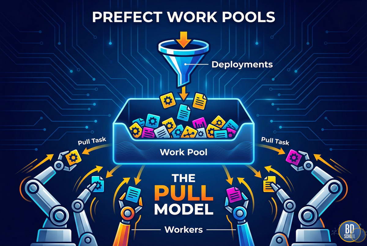 - Work Queue (Очередь): Развертывание привязывается к определенному Work Pool (например, prod-gpu-pool или light-cpu-pool). Запланированные запуски попадают в очередь этого пула.